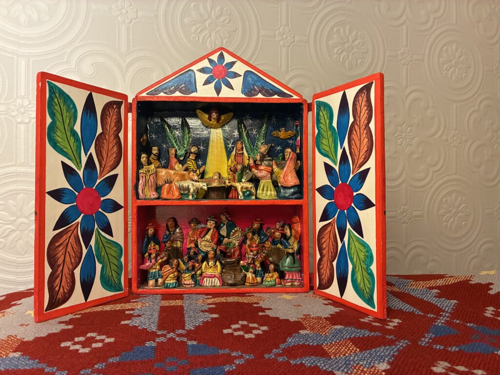 And then, on to December.. my nan’s old Welsh blanket box was opened.. the old decorations with new additions added to the fold in the shape of a candle arch, a squat nutcracker, a vintage Dam troll dressed for the North Pole, and best of all, a Peruvian retablo nativity.