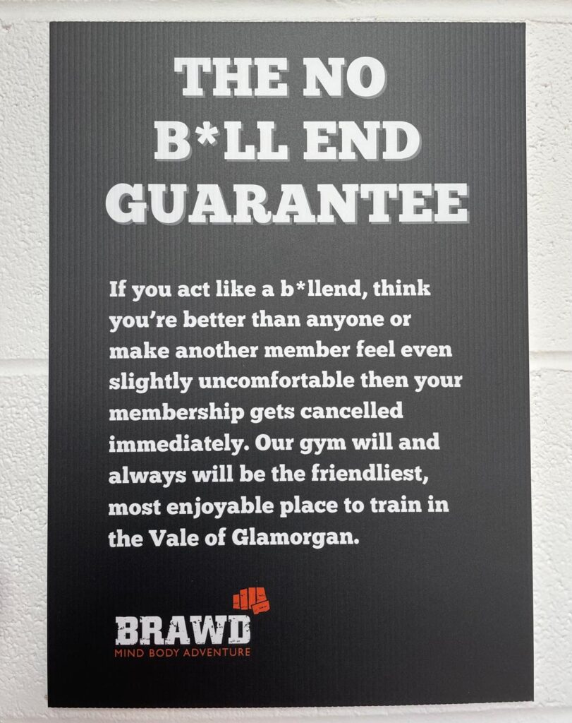 Inclusive and welcoming, on the wall as you enter the space there is a sign I have seriously considered making an official part of my company policy: The No Bellend Guarantee.