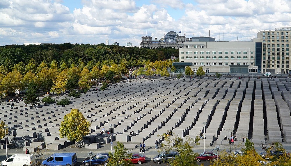 Mae’r gofeb yn cynnwys 2,711 o lechi concrit enfawr, ac mae pob un ohonyn nhw’n symboleiddio nifer fawr o Iddewon wedi’u llofruddio.