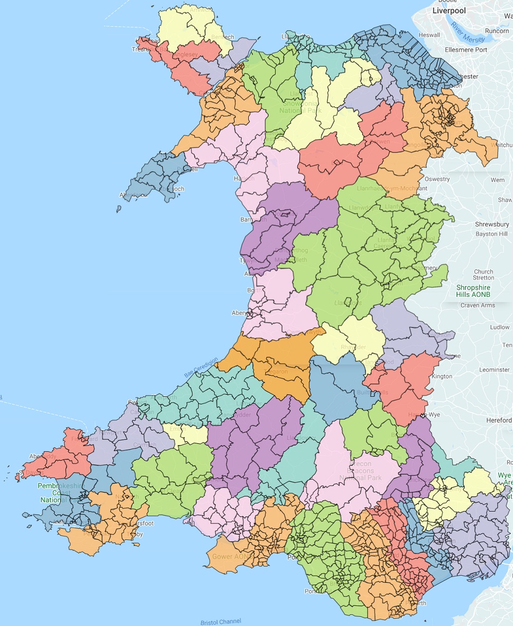 Unfortunately in some cases, it was impossible to map the cantrefi exactly on to present council wards.