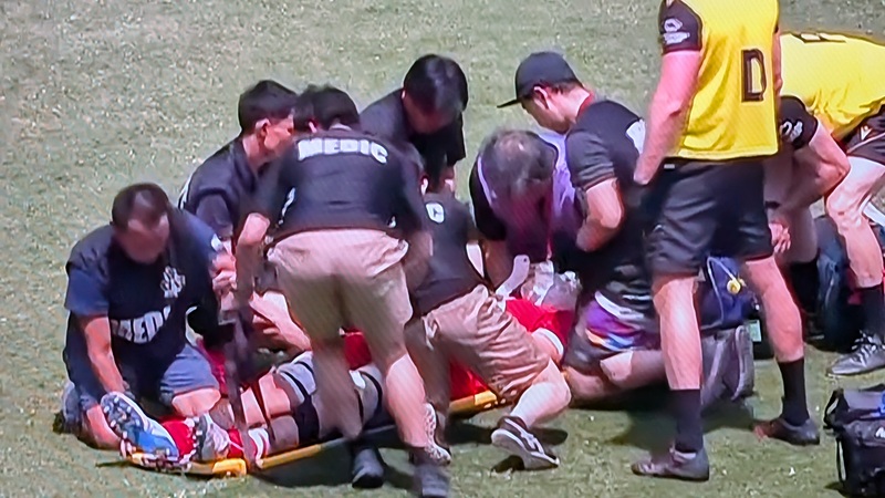 There was real concern as the second row lay prone on the turf having been concussed in attempting a tackle, with the referee immediately stopping play and medical staff rushing to his aid.