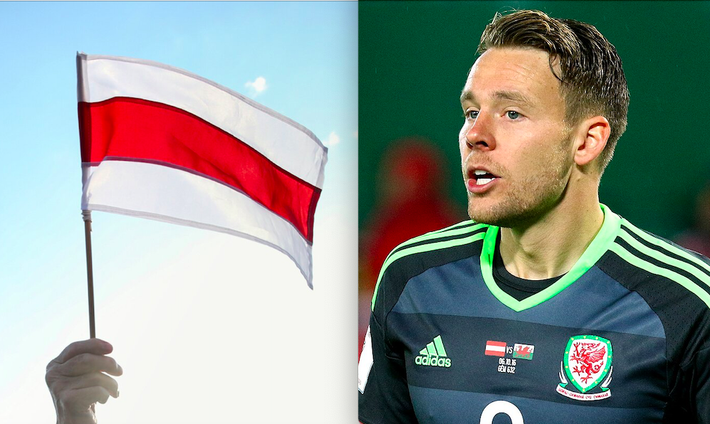 Belarusian sports news service Tribunaby highlighted the fact Gunter was wearing a wristband that resembled the former Belarus flag on its Instagram page posting the message: ‘Greetings from Wales defender Chris Gunter for all Belarusians’, alongside a close up image of his wristband.