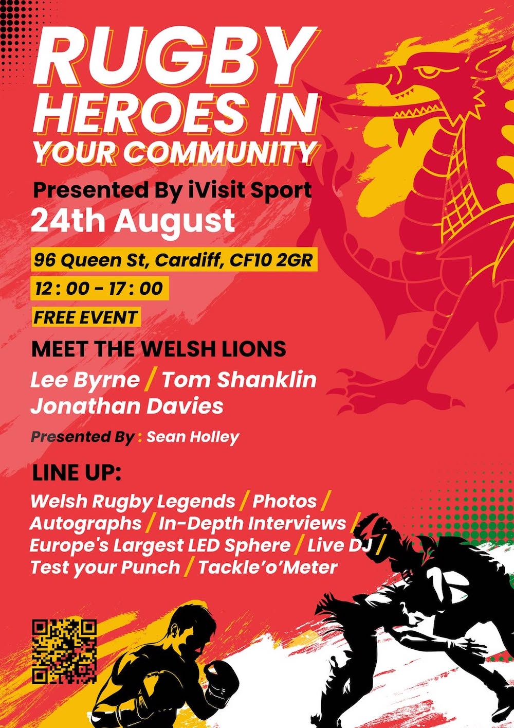 “Sunday 24th August – Meet Your Rugby Legends – This day focuses on giving communities direct access to rugby athletes. Welsh legends Lee Byrne, Jonathan Davies and Tom Shanklin will be in attendance, providing Q&As and motivational speeches. Additionally, Sean Holley will act as presenter for the day.