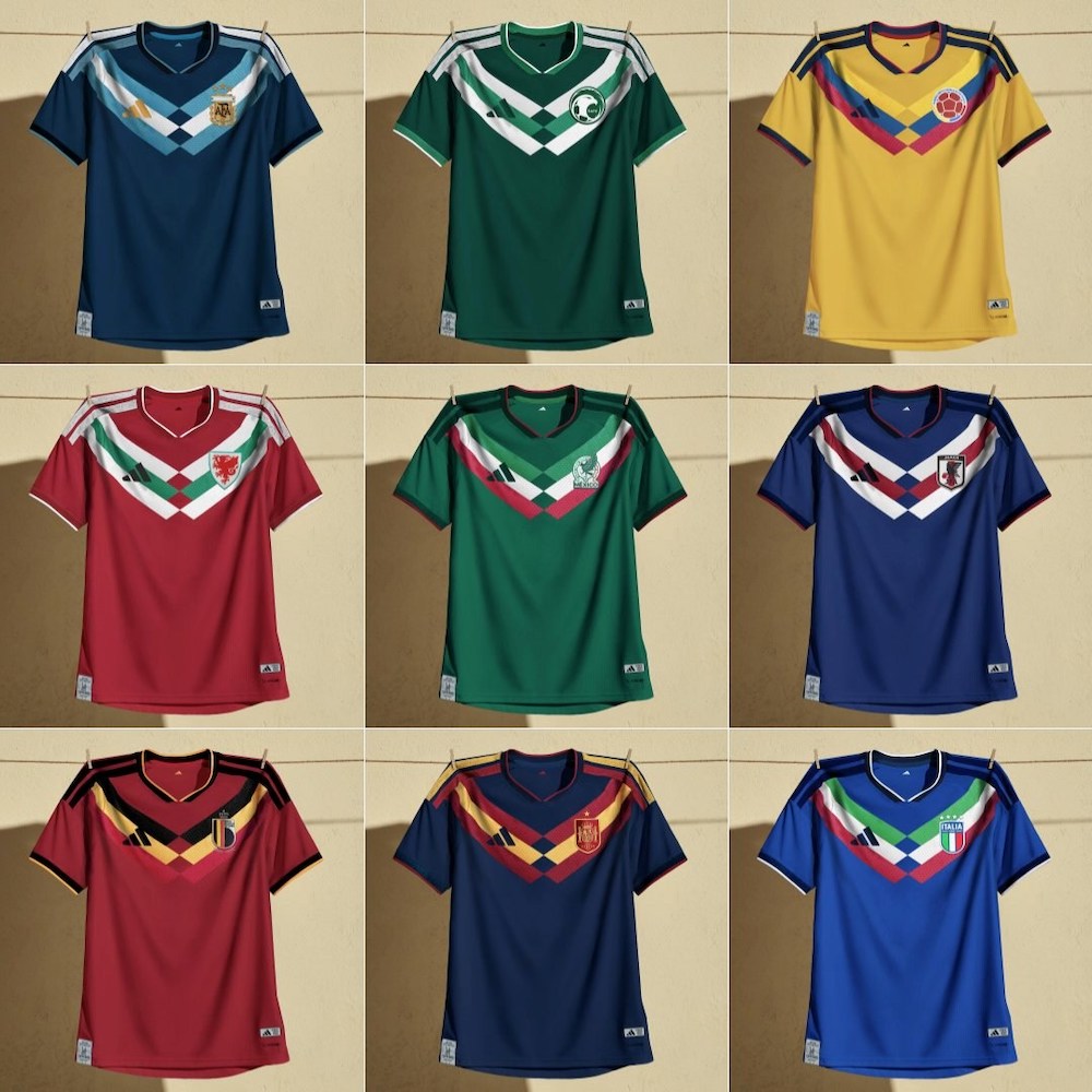 “The stunning concept kits feature the signature chevron pattern seen on the Germany shirt, applied across multiple national teams including Argentina, Saudi Arabia, Colombia, Wales, Mexico, Japan, Belgium, Spain, and Italy,” wrote leading football kits website Footy Headlines.