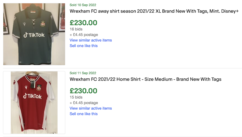And it’s not just those prized replica kits selling for hundreds, past Wrexham shirts have also been changing hands for an inflated price.