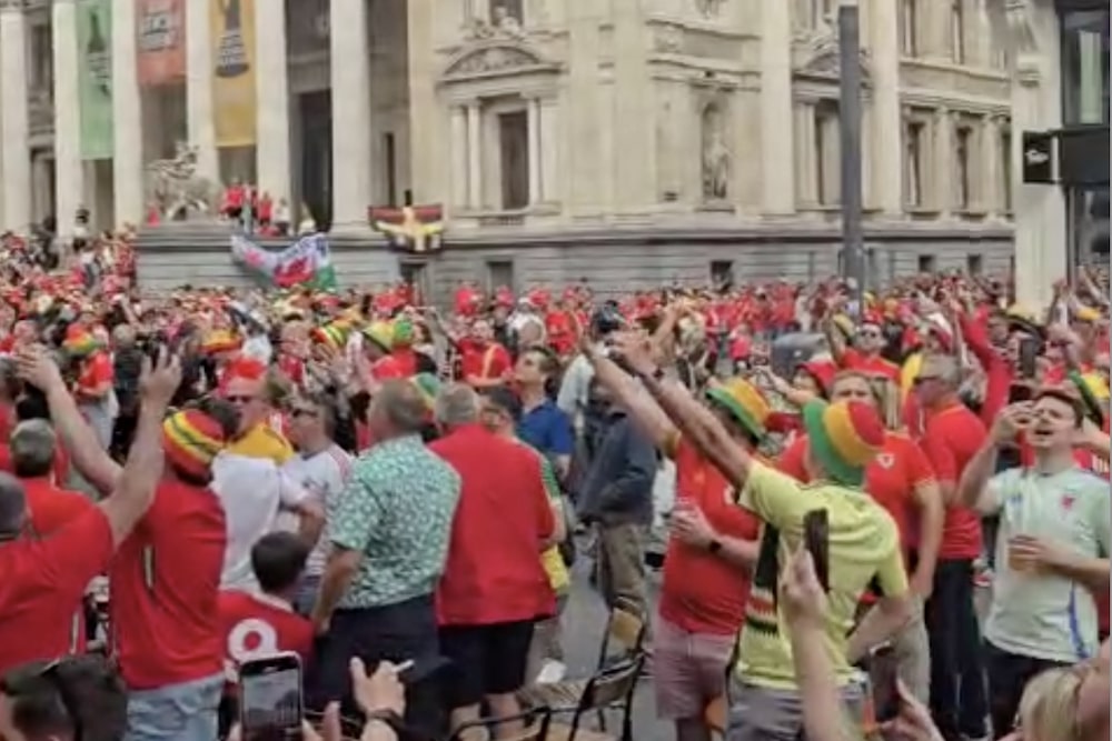 Thousands of Wales fans belt out stirring anthem in Brussels square
