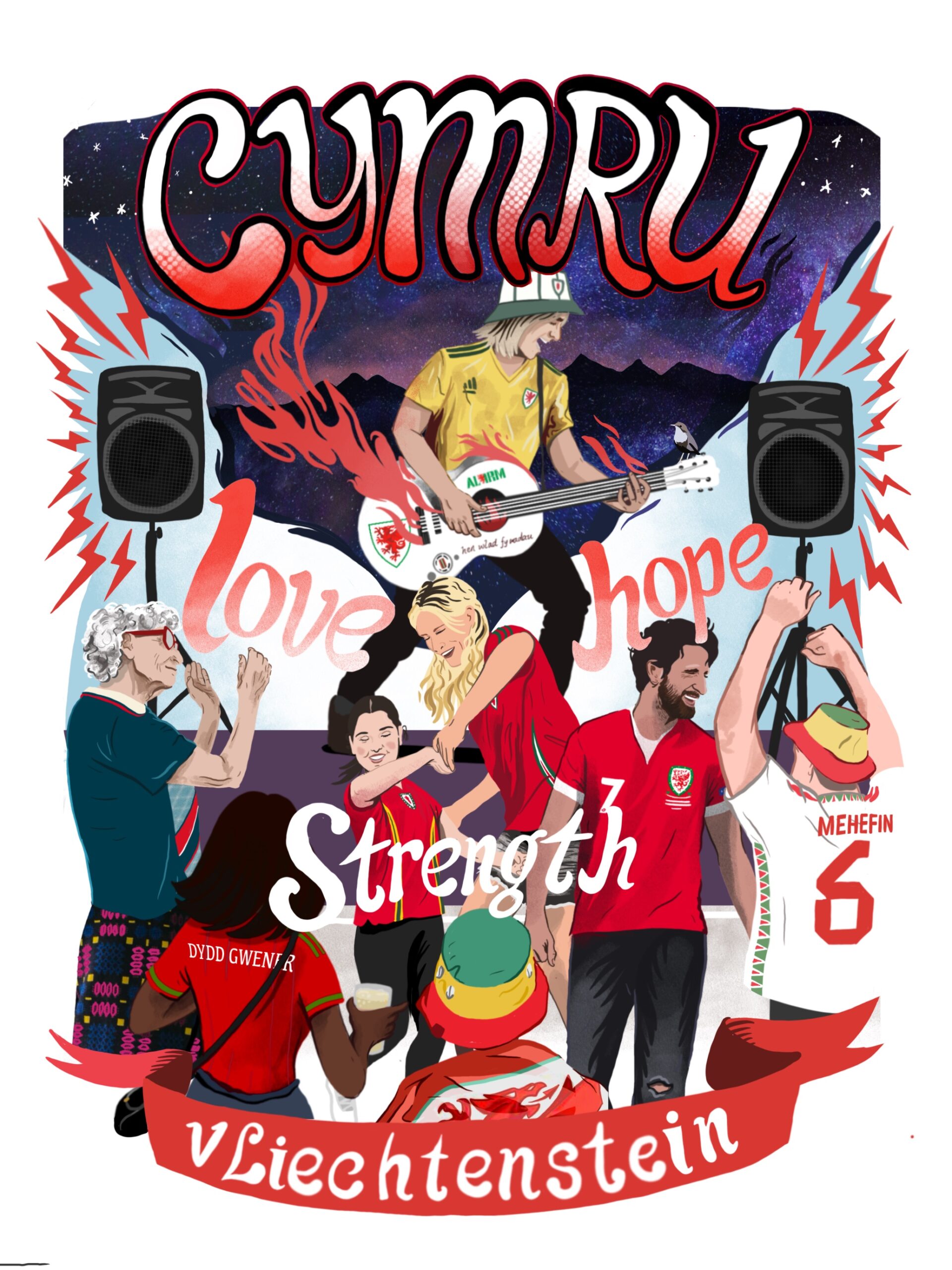 Ahead of the game against Liechtenstein the singer was featured in artwork created by design agency Visually Speaking, who create all the FAW’s striking matchday posters.