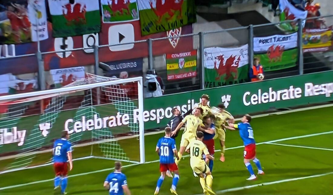 But Welsh celebrations were curtailed when Albanian referee Juxhin Xhaja was sent to the pitchside monitor and decided that at least one of the Wales centre-halves was in an offside position from James’ header.