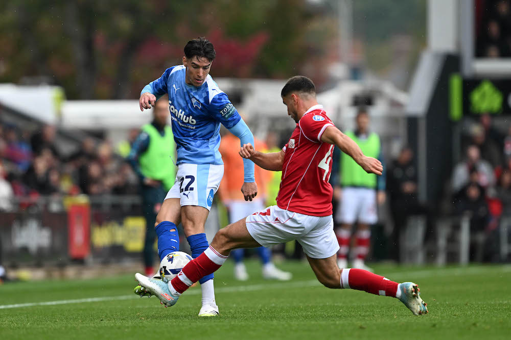 Agyemang headed the ball through to him for the Chilean international to knock it beyond defender Lewis Brunt and thump it past Okonkwo from 25 yards to record his first goal in Derby colours.